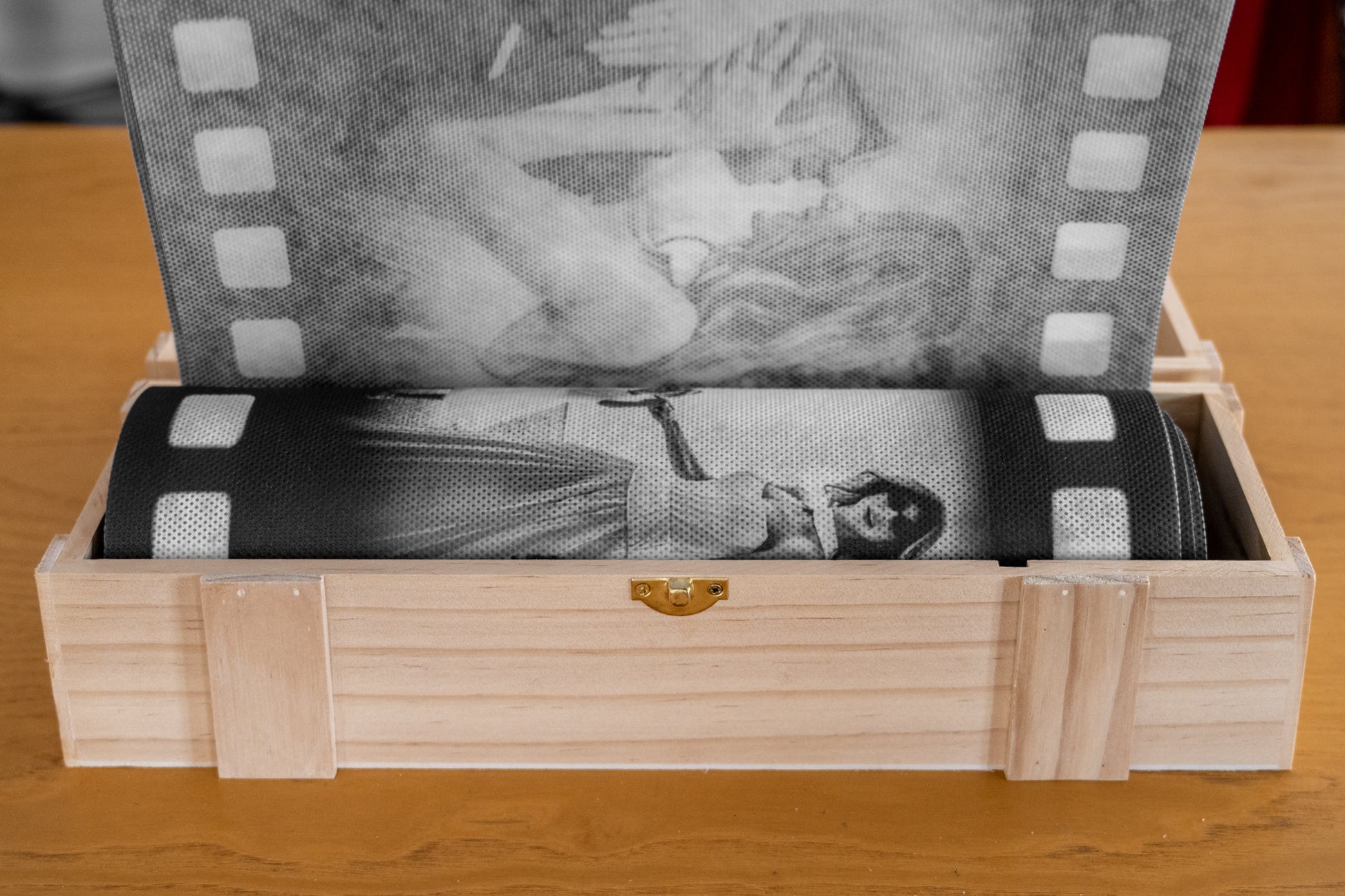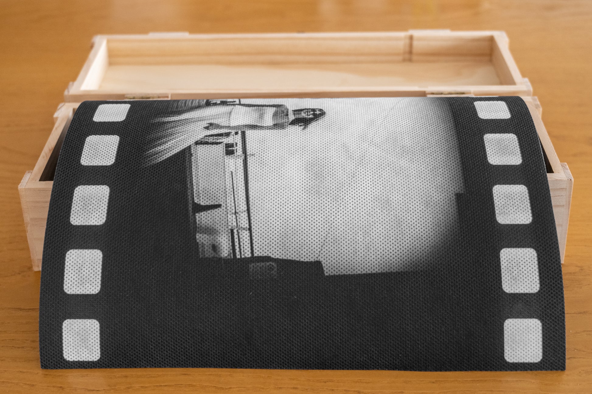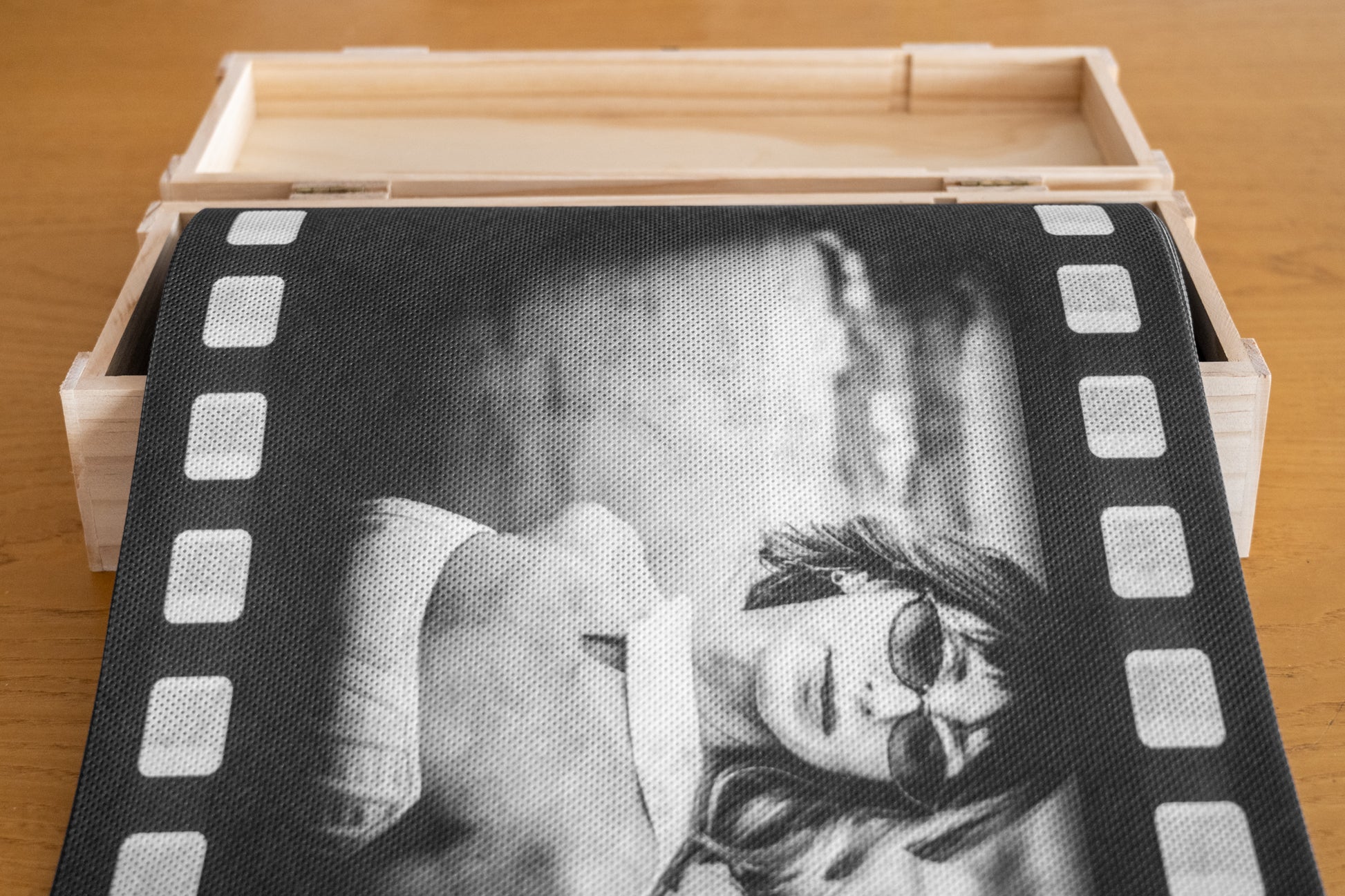 Un oggetto che unisce memoria, design e scenografia: Il formato ispirato alla pellicola cinematografica trasforma le tue fotografie in una sequenza continua.